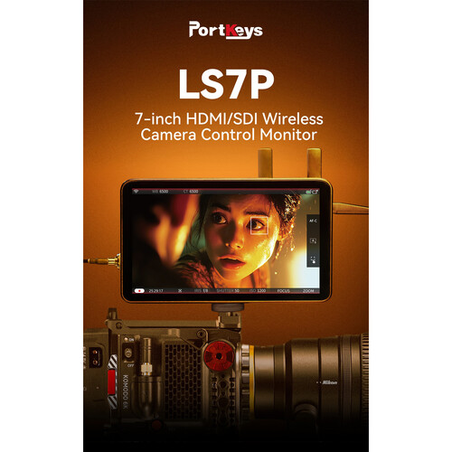 PORTKEYS 7″ HDMI/SDI High‑Bright Monitor with Wireless Camera Control (LS7P) is a 7″ 1080p touchscreen field monitor with up to 1000 nits brightness, 10‑bit panel, DCI 4K30 HDMI and 1080p 3G‑SDI input, HDMI/SDI loop outputs, advanced monitoring tools (waveform, vectorscope, zebra, 3D LUTs), and wireless camera control of up to four cameras via Wi‑Fi/Bluetooth using Movnorm OS.